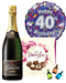 A great way to celebrate the 40th birthday of anyone in your life from a family member to your best mate and beyond. Perfect for sending to any birthday party, bash or get-together; from front to back this 40th Birthday Champagne and Chocolates Gift Box offers truly delicious flavours that no other gift set on the market can match. Complete with a bottle of Lanson Black Label Champagne, a 200g box of milk chocolates and a colourful 40th birthday balloon that pops out when its opened; this amazingly gorgeous gift set is ideal for delivery to anyone turning 40 that could use something special to smile about.