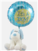 A great gift to welcome any new baby into the world. A 10 inch extra soft cuddly dog, white and powder blue together with a powder blue helium balloon. Personalize this gift by adding your own personal message.