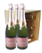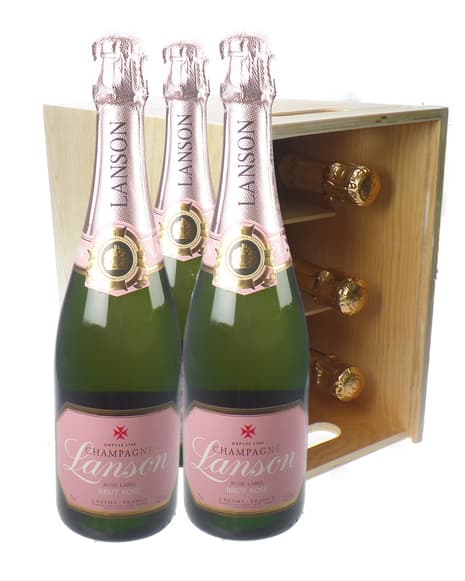 Six bottles of Lanson Rose Champagne. Presented in a strong wooden crate, the bottles are divided by wooden slots. The crate has a sliding lid and you can personalize this gift by adding your own personal message.
