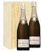 Draw out the celebrations and increase the fun with this twin Champagne gift set. Perfect for a party or gathering, mark the occasion with two bottles of the refined and delightful Louis Roederer NV Champagne. With enough to serve 12 flutes, this gift set is presented in one of our twin bottle wooden gift boxes and is protected with wood wool. Plus, if you’re sending this as a gift, don’t forget to include a personalised message to let your lucky recipient know who to thank! Have it delivered anywhere in the UK with next day or selected date delivery. It’s the perfect gift to get the party started!