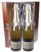 Two bottles of NV Champagne. Presented in a luxurious stained wooden box with traditional joins and hinged lid with clasp. The inside of the boxed is lined with blue silk and you can personalize this gift by adding your own personal message.