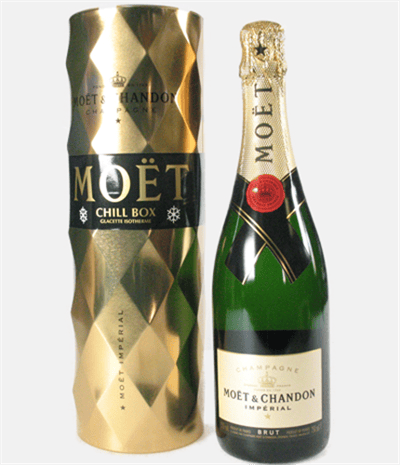 A single bottle of Moet & Chandon Brut Imperial Champagne. This is presented in a gold ice tube box which is designed to keep your bottle perfectly chilled for up to 2 hours. Personalize this gift by adding your own personal message.