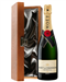 Exuding absolute style and complete sophistication from top to bottom, every inch of this amazingly high-quality gift set is nothing short of luxurious. Presented in an incredibly gorgeous stained wooden box complete with a hinged lid and a durable clasp for easy closure, this Moet et Chandon Luxury Gift Box is designed to catch attention upon arrival and keeps it safe until delivery is completed. Beautifully lined with grey silk and so much more than just a basic gift box, this item also contains a single bottle of Moet & Chandon Brut Imperial Champagne within it and offers a true elegance that no other gift box can even come close to.