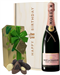 Just the gift box to send for celebrating any birthday that comes up on your calendar; this Moet & Chandon Rose Champagne and Chocolates Birthday Gift Box makes a stylish and unique addition to any birthday party no matter how casual or classy it may be. Easy to personalise with a message from you and presented in a sturdy wooden box with the words ‘Happy Birthday’ printed perfectly on top; from the moment this gift box arrives, you can be certain it will be clear to the recipient why this high-quality gift box was delivered. As chic and luxurious as a gift box can get; from the bottle of Moet & Chandon Champagne to the 250g ballotin of assorted Belgian chocolates, every inch of this set is sure to satisfy.