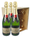 Exactly what you need to assure your special event has enough champagne for all your guests to enjoy; this Moet & Chandon Champagne Six Bottle Wooden Crate provides any occasion with six bottles of delectable champagne for use and will have everyone asking for more next time. Presented in a remarkably strong wooden crate and featuring dividers that separate the bottles for secure transport and delivery, this crate is certain to arrive ready for consumption right away. Complete with a sliding lid that keeps the bottles right where you want them until you need them, this crate can even be customized with a personal message along with it if desired.