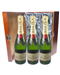 Three bottles of Moet & Chandon Brut Imperial Champagne. Presented in a luxurious stained wooden box with traditional joins and hinged lid with clasp. The inside of the boxed is lined with blue silk and you can personalize this gift by adding your own personal message.