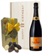 A lovely and luxurious gift set that features a chic appearance and truly incredible flavours as well; this Veuve Clicquot Vintage Champagne and Chocolates Birthday Gift Box is designed to fully satisfy anyone celebrating their birthday, any time of the year. Complete with a bottle of Veuve Clicquot Vintage Champagne and a 190g ballotin of assorted Belgian chocolate truffles within it, this remarkably chic gift box boasts absolute sophistication that no other present can match. Personalise this gift set with a message from you and feel free to send it to anyone in your life from a friend to a family member, colleague, or even a client.