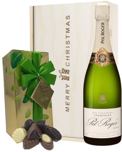 Treat someone to Winston Churchill’s Champagne of choice with this Christmas gift set. Let a loved one indulge in a single bottle of Pol Roger Brut Champagne alongside a box of assorted Belgian chocolates. Deliciously paired, this is the perfect Christmas gift for anyone who loves Champagne or chocolate! It’s delicately presented in one of our wooden gift boxes with ‘Merry Christmas’ printed on the lid and is protected with wood wool for safe delivery. You can send this gift anywhere in the UK with next day or selected date delivery. Plus, complete this gift with a personalised message and give someone the perfect surprise this Christmas!