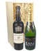 A single bottle Taylors 10 Year Old Port and a single bottle of Moet and Chandon Vintage Champagne. This is presented in a wooden gift box and is lined with wood wool. Personalize this gift by adding your own personal message.