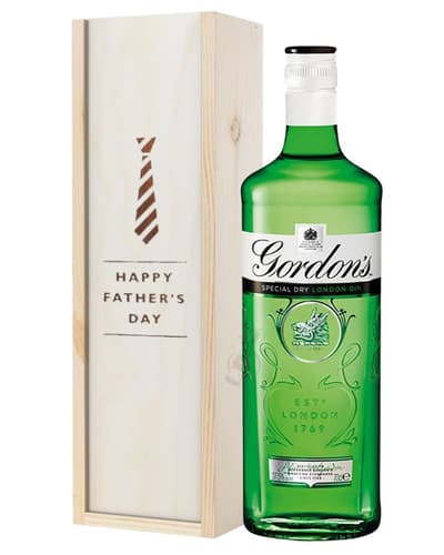 A one-of-a-kind way to send scrumptious Father’s Day greetings to the most important man in your life; from the moment this Gordon’s Gin Father’s Day Gift Box arrives it’s sure to bring happiness and instantly warm them up from the inside out. Complete with a single bottle of Gordon’s Special London Dry Gin and presented in a sturdy wooden box with the words ‘Happy Father’s Day’ and a tie symbol stamped on top, no other present option will surprise and delight any recipient the way this one will. Easy to customise with a personal message from you and great to send to any Father’s Day celebration for enjoyment, this set makes a great gift option to have delivered to anyone from your own father or the father of your children and beyond.