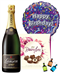 An incredibly unique birthday gift that is absolutely certain to surprise anyone that receives it, this Happy Birthday Champagne and Chocolates Gift also features an ultra-fun inflated balloon within the box that pops out upon opening for a little extra something special. A surefire way to bring a smile to the face of anyone celebrating a birthday; this gift set includes a single bottle of Lanson Black Label Brut Champagne as well as 200g of delightful milk chocolate within it, a winning combination for any yearly birthday celebration. Sending someone happy birthday wishes has never been easier than this.