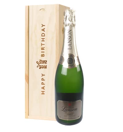 A single bottle of Lanson Gold Label 2005 Vintage Champagne. This is presented in our 'Happy Birthday' branded wooden gift box and is lined with wood wool. Personalize this gift by adding your own personal message.