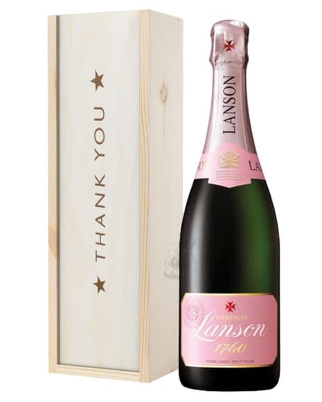 Perfect for any Champagne lover, this gift is the ultimate way to say thank you. Whether they helped you out, did you a favour or are simply a great person, treat someone in your life to a single bottle of Lanson Rose Brut Champagne to enjoy. Easy to send anywhere in the UK, this gift is presented in one of our wooden gift boxes with ‘Thank You’ printed on the lid and wood wool lining. You can also personalise this gift with a written message, printed onto a card and included with the gift. Surprise them by having it delivered straight to their door with next day or selected date delivery. So no matter where they are, you can show your appreciation and gratitude with this wonderful gift.