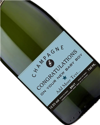 This personalised bottle of Champagne is the perfect way to congratulate the parents on the birth of their new baby boy. You can add your own words to the label of this Paul Langier Brut Champagne and it will be delivered in our classic wooden gift box with the words 'Congratulations' printed on the sliding lid. You can also add a gift card message which we will include with the bottle in the box and there is an option during checkout to purchase a baby boy helium balloon. Select the date of your choice or choose next-day delivery in the UK.