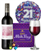 Boasting a bold bottle of Shiraz, a 200g box of milk chocolates and a pre-inflated 21st birthday balloon; from front to back this high-quality gift box offers a festive way to celebrate a 21st birthday, all within one amazing box. Simple to personalise with a message from you if desired, this 21st Birthday Red Wine and Chocolates Gift Set is the ideal gift option for delivery to any friend, family member or even co-worker that is celebrating their 21st birthday this year. Remarkably delicious and incredibly elegant, this delightful gift set allows anyone to commemorate this extraordinary milestone in a one-of-a-kind way.