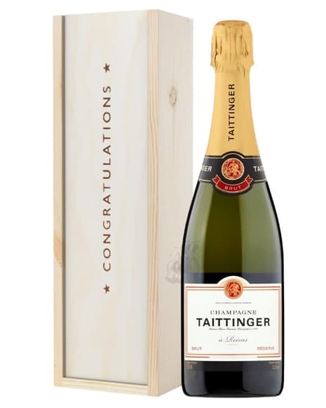 Just the gift box you need when sending your heartfelt congratulations to someone you care for; when one of these truly sophisticated Taittinger Brut Champagne Congratulations Gift Boxes arrives, the recipient is certain to know that you are congratulation them on a job well done. Complete with a single bottle of Taittinger Brut Champagne that is a delight to drink from start to finish, this gift box boasts a delectable flavour and a remarkably chic appearance from the outside in as well. Presented in a high-quality wooden box with the word ‘Congratulations’ stamped clearly on top, this amazing gift set makes a statement, whether it’s sent to your co-worker to congratulate them on promotion or otherwise.