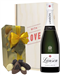 Make your Valentine’s Day unforgettable with this delicious Champagne and chocolate gift set. Treat your Valentine to a single bottle of Lanson White Label Champagne along with a box of assorted Belgian chocolates. What’s not to love? Both are beautifully presented in one of our wooden gift boxes with ‘With Love’ printed on the lid and wood wool lining for style and protection. Plus, add that extra romantic touch with a personalised message printed onto a gift card. Send this gift anywhere in the UK with next day or selected date delivery and make this a Valentine’s Day that’ll beat no other.