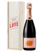 Everyone knows, pink is the colour of love and Champagne is the taste of Valentine’s Day. This February treat your Valentine to an extra special gift with this exceptional gift set. Enjoy a single bottle of Veuve Clicquot Rose Champagne after a romantic meal and make it a night to remember! This gift is beautifully presented in one of our wooden gift boxes with ‘With Love’ printed on the lid and is protected with wood wool for safe delivery. You can personalise this gift with a written and printed message. Send this gift straight to someone’s door with next day or selected date delivery anywhere in the UK.