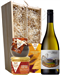 Beautifully presented in a chic and simply elegant wooden box and lined with wood wool to ensure secure delivery to any desired location; from front to back this uniquely delicious Chardonnay Wine & Gourmet Food Gift Box boasts nothing but unmatchable quality and undeniable flavour unlike any other. Complete with a single bottle of Australian Chardonnay as well as a 90g jar of Cottage Delight Farmhouse Pate with Pork, a 115g jar of pickles and a 150g package of Oval Alberts Savoury Biscuits, this high-quality gift set will satisfy anyone with sophisticated tastes from the first bite to the very last sip. Personalize this gift box with a message from you and send it to anyone from your mum to your mentor at work or school.
