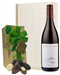 A single bottle of Cloudy Bay Pinot Noir 2015 Wine together with assorted Belgian chocolates (250g approx 20 chocolates). Presented in a wooden gift box lined with woodwool. Personalize this gift by adding your own personal message.